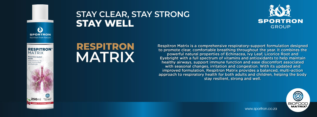 Breathing comfortably is something we often take for granted — until seasonal changes, allergies, or congestion make it harder to do. For children and adults alike, respiratory discomfort can affect sleep, energy levels, and overall wellbeing. Sportron Respitron® Matrix Syrup was developed to support clear airways, comfortable breathing, and immune health in a gentle, family-friendly way.